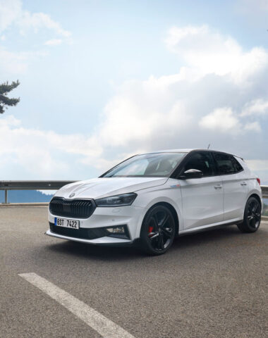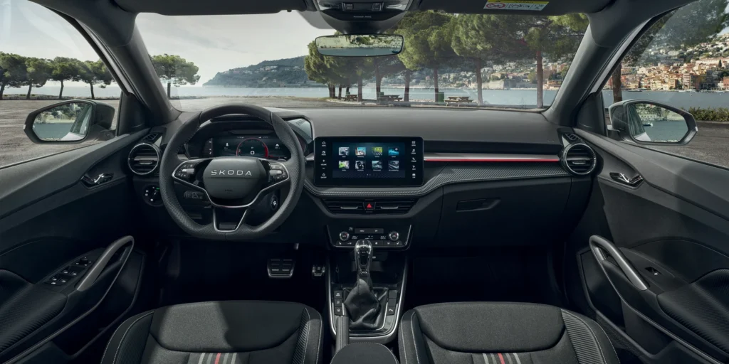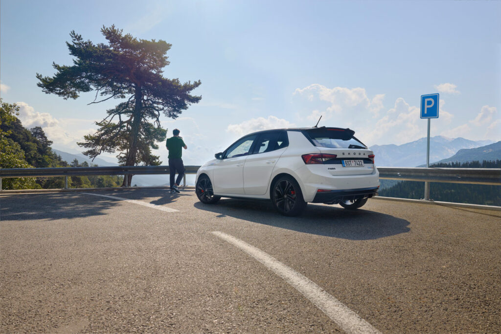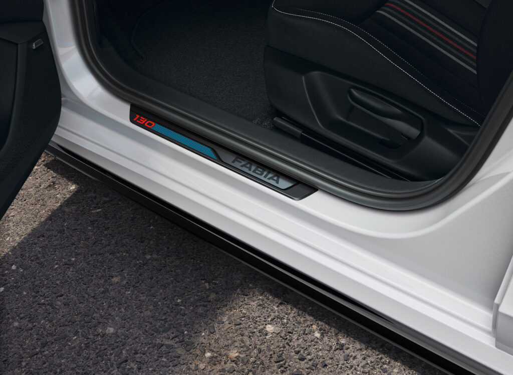 Fabia 130 Sport dostępna jest w czterech kolorach – białym, czerwonym, niebieskim i czarnym. Czarne detale nadwozia, inspirowane wersją rajdową Rally2, podkreślają jej dynamiczny charakter. Wnętrze utrzymano w sportowej tonacji: fotele z mocnym trzymaniem bocznym, trójramienna kierownica, stalowe nakładki na pedały oraz 10-calowy Virtual Cockpit.