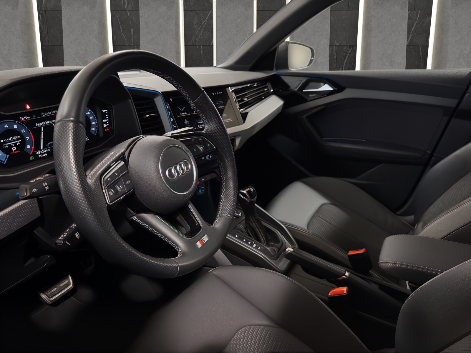 Tapicerka: Alcantara połączona ze skórą z wytłoczeniem S