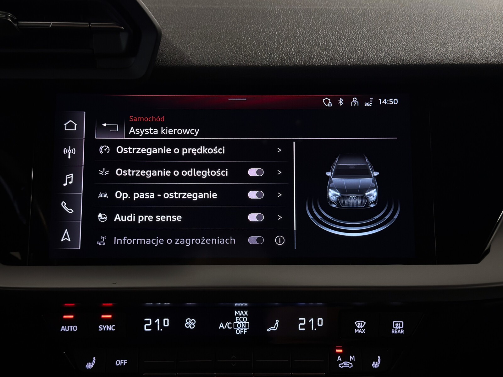 ostrzeżenie o opuszczeniu pasa ruchu Audi lane assist
