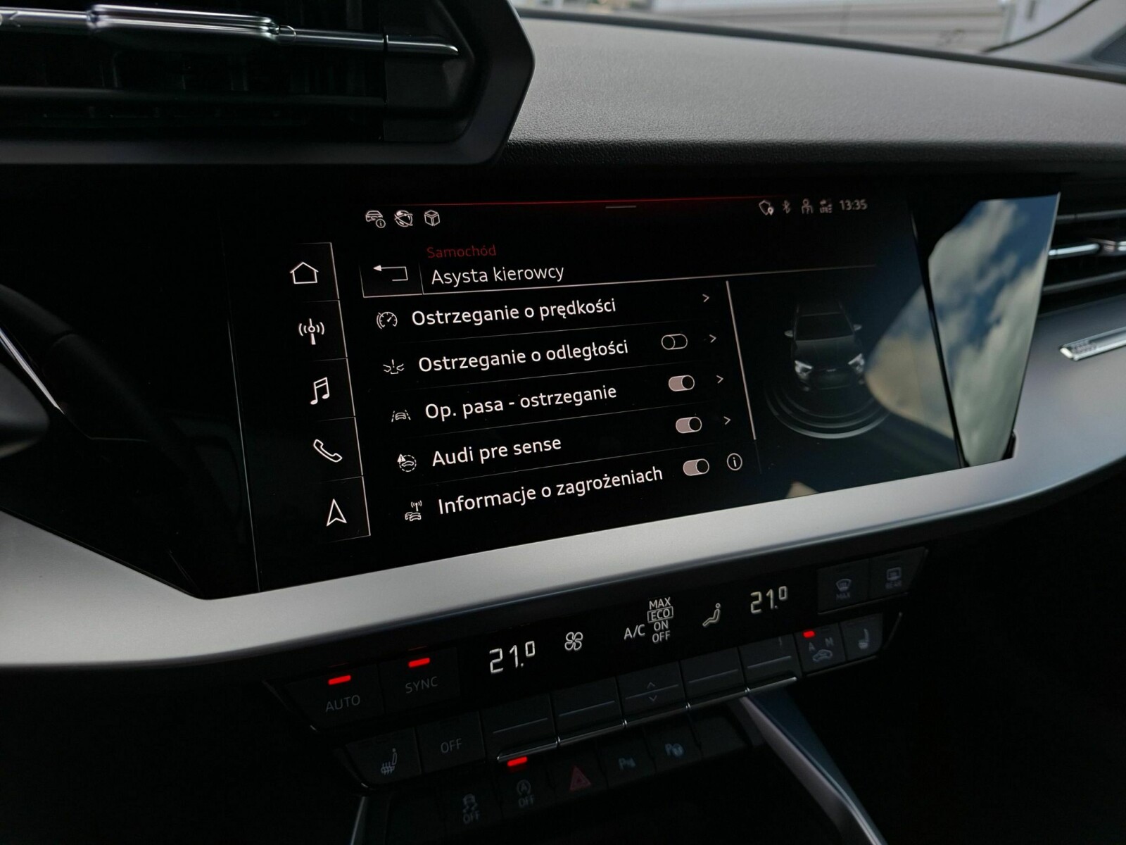 Ostrzeżenie o opuszczeniu pasa ruchu (Audi lane assist)