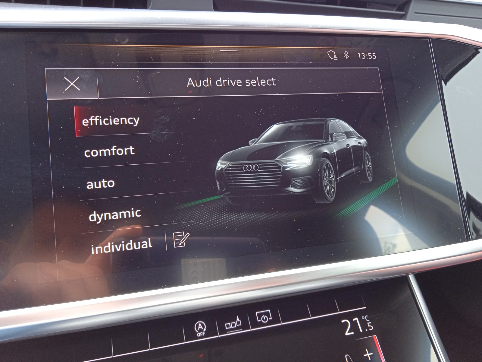 8 głośników, Alarm z zabezpieczeniem przed odholowaniem pojazdu, Asystent świateł drogowych - funkcja automatycznego włączania/wyłączania świateł drogowych, Audi Extensive 3 lata/90 000 km - program serwisowy, Audi Music Interface (UF7) - gniazdo do podłączenia urządzeń zewnętrznych, Audi drive select (zmiana charakterystyki trybu jazdy), Audi pre sense basic - system wspomagający bezpieczeństwo kierowcy i pasażerów, Audi pre sense front, Czujnik ciśnienia w oponach, Dodatkowy zbiornik adBlue(12 litrów), Dywaniki podłogowe przód i tył, Elementy dekoracyjne wnętrza - pokryte lakierem refleksyjnym, Felgi aluminiowe 17 (10-ramienne) z ogumieniem, Fotele przednie regulowane elektrycznie z funkcją pamięci ustawień dla fotela kierowcy, Fotele przednie z elektryczną regulacją podparcia odcinka lędźwiowego, Kierownica wielofunkcyjna - skórzana, Klimatyzacja automatyczna, 2-strefowa, Kolumna kierownicy z manualną regulacją położenia, Komputer pokładowy 7 z kolorowym wyświetlaczem, Kurtyny powietrzne z przodu i z tyłu, Lakier uni, Lampy przednie w technologii LED, Lampy tylne wykonane w technice diodowej (LED), Listwy ozdobne wokół szyb w kolorze srebrnym, Listwy progowe - aluminiowe, Lusterka boczne elektrycznie składane z funkcją pamięci, podgrzewane, Lusterka boczne regulowane elektrycznie, Lusterka boczne z funkcją automatycznego opuszczania prawego lusterka podczas cofania, Lusterka w kolorze nadwozia, Lusterko wsteczne z automatyczną funkcją p/oślepieniową, Panel obsługi z przyciskami z matowej czerni, Podsufitka tkaninowa, Podłokietnik przedni, komfortowy, dla kierowcy i pasażera (ze schowkiem), Progresywny układ kierowniczy, Radio MMI plus, Rozszerzony zakres ochrony pieszych, Szyba tylna i szyby boczne z powłoką termoizolacyjną, Tapicerka tkaninowa Index, Tempomat z regulacją i limiterem prędkości, Trójkąt ostrzegawczy i apteczka, Uchwyty ISOFIX - tył z funkcją Top Tether, Usługi Audi connect Safety&Service, Wspomaganie układu kierowniczego, elektromechaniczne, Wyłącznik poduszki powietrznej pasażera z przodu, Zagłówki w fotelach z przodu, Zamek centralny z pilotem, Zawieszenie dynamiczne, Zbiornik paliwa - 63l, Zderzaki, wzmocnione, Zestaw do naprawy przebitej opony, Złącze Bluetooth, Światła do jazdy dziennej LED,