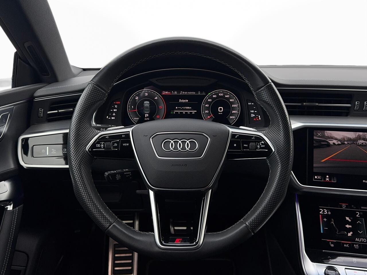 Pakiet sportowy S line (podsufitka czarna, zawieszenie sportowe, pedały aluminium, listwy S-line, kierownica sportowa, felgi 20" S-design, fotele sportowe S, dekor aluminium matowe)