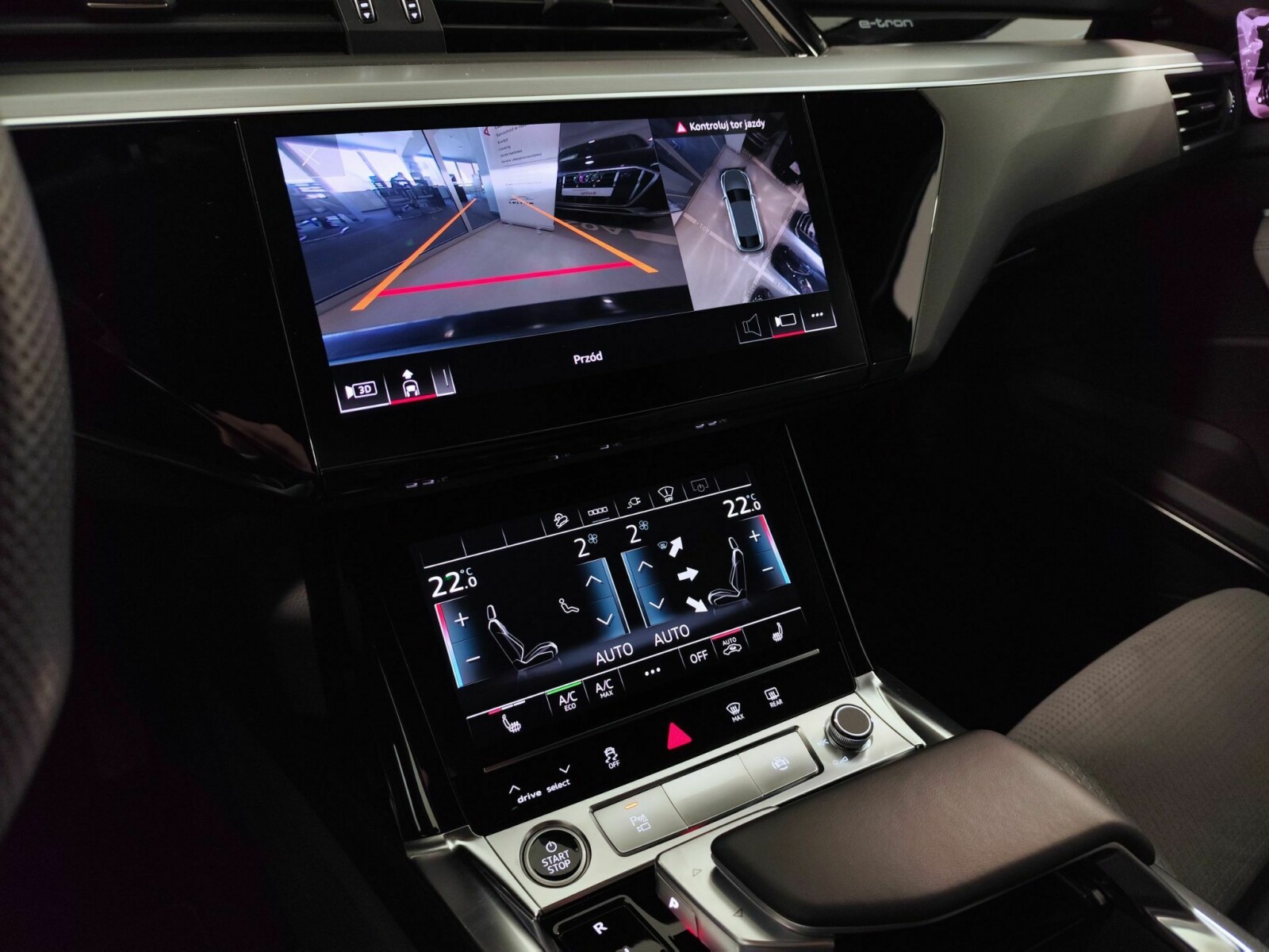 Czujniki parkowania przód oraz tył z wizualizacja na ekranie MMI
