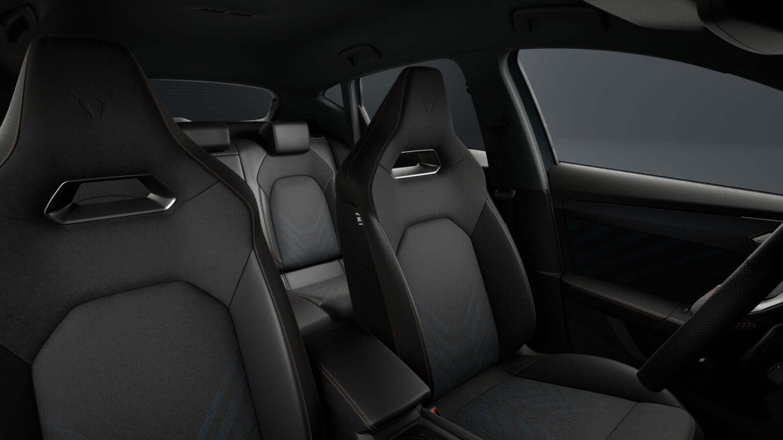 Wnętrze CUPRA z elementami dekoracyjnymi deski rozdzielczej w kolorze ciemnego aluminium i miedzi