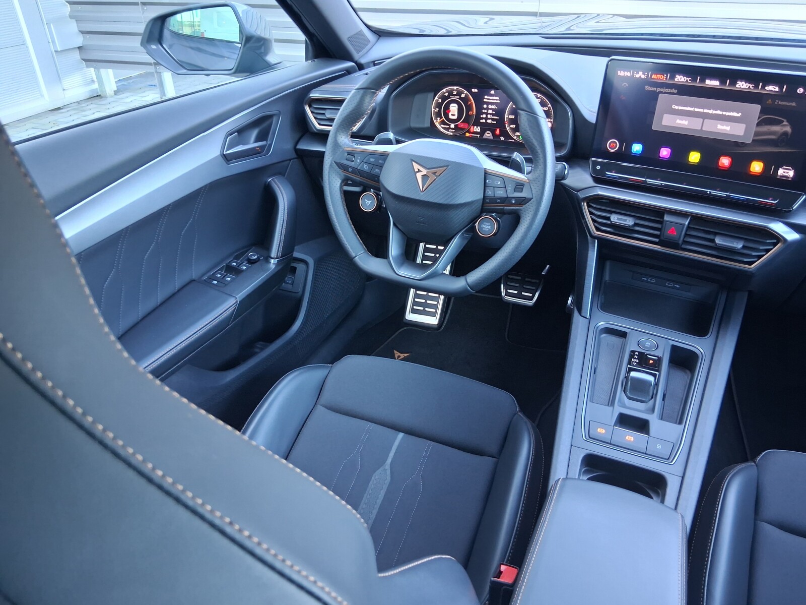 Wykończenie wnętrza CUPRA z elementami dekoracyjnymi deski rozd.w kolorze ciemnego aluminium i miedz