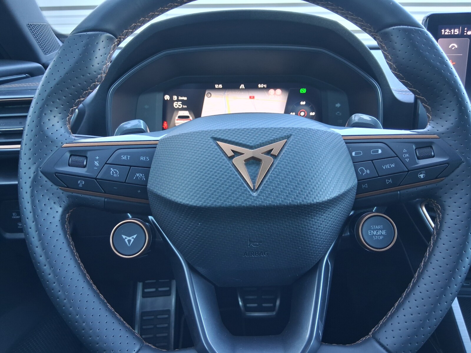 Kierownica wielofunkcyjna sportowa, podgrzewana z przyciskiem trybu CUPRA i uruchamiania silnika