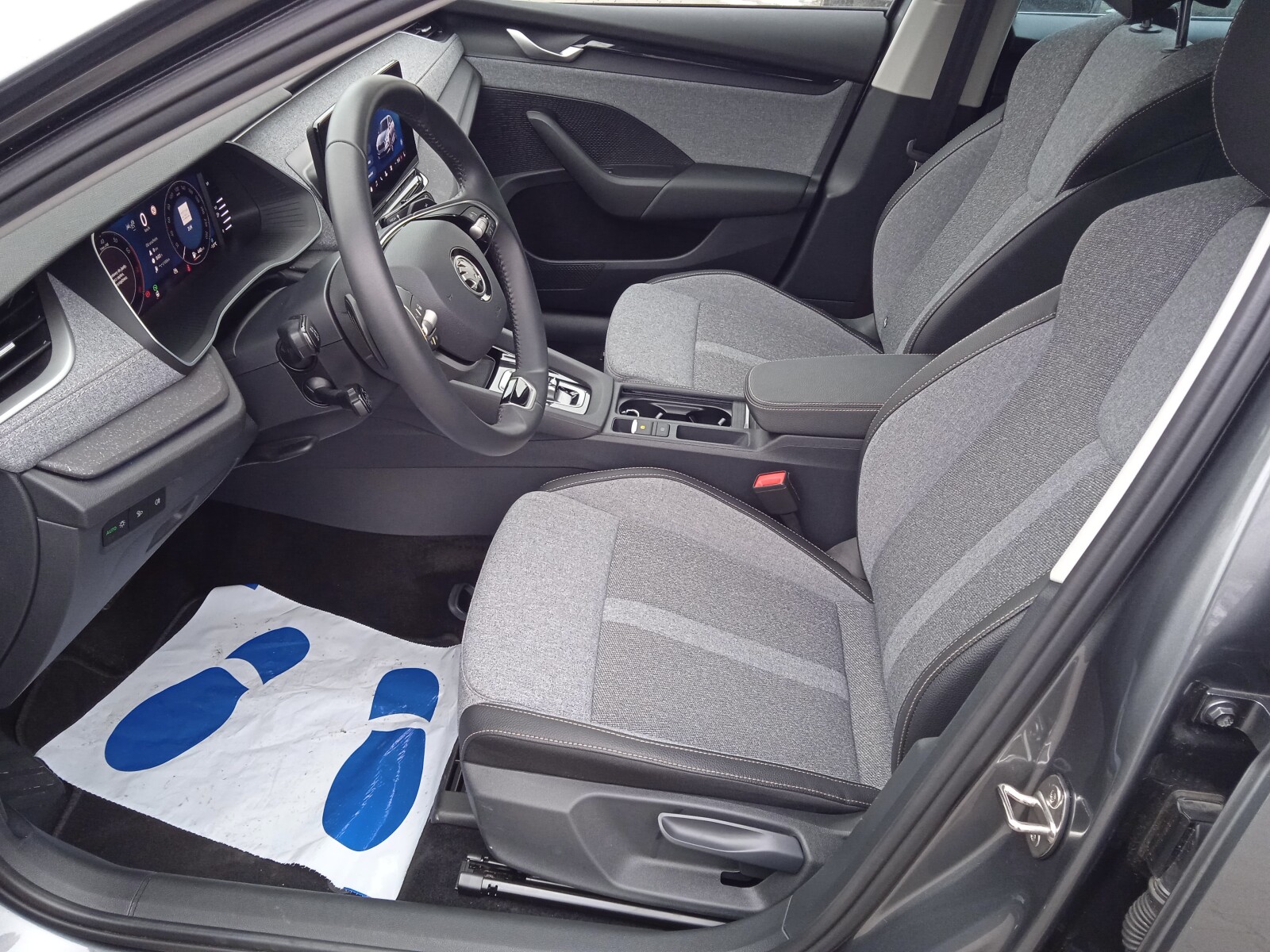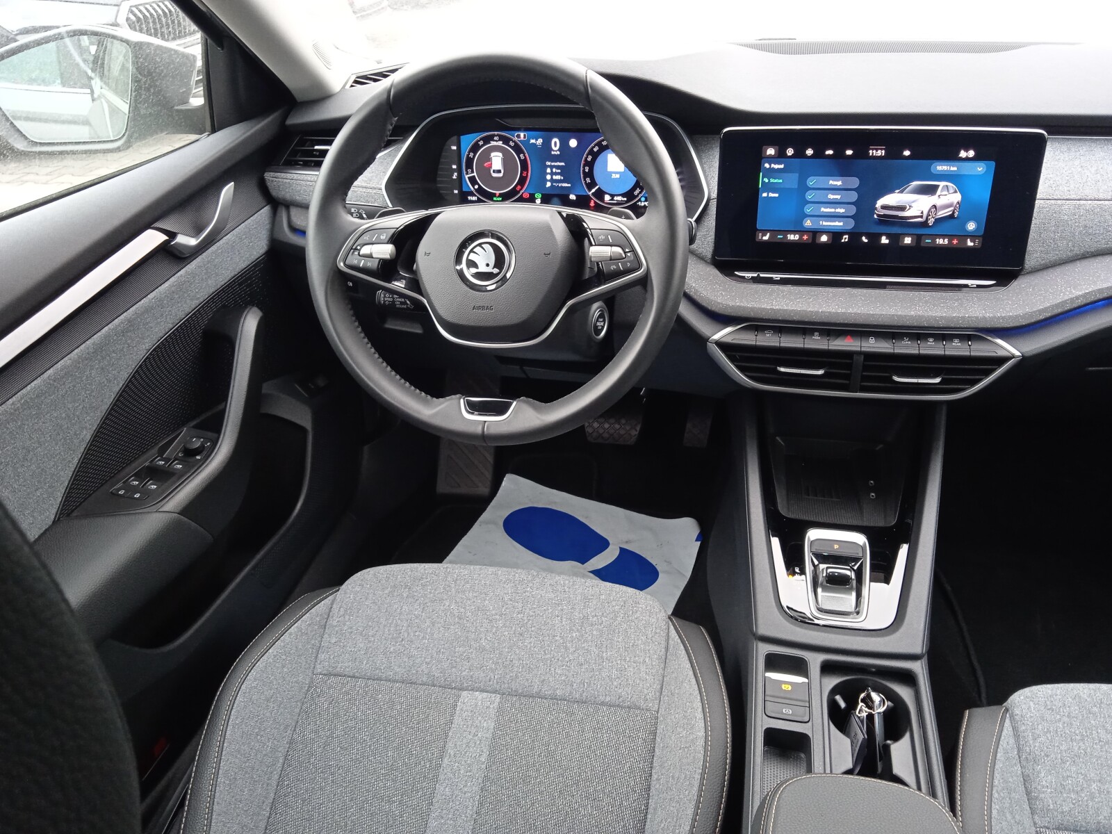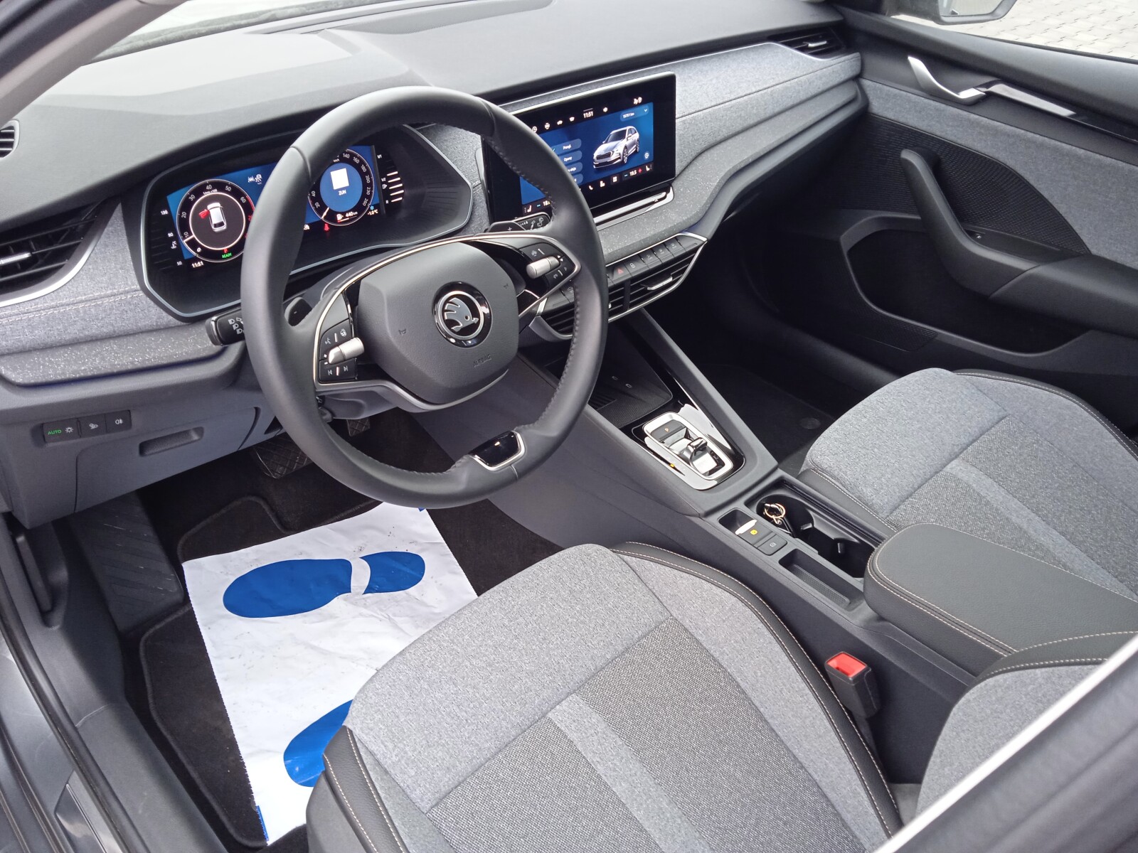 - Wnętrze Design Selection Lodge (Podsufitka w kolorze szarym, Oparcie tylnej kanapy składane od strony bagażnika poprzez przycisk, Oświetlenie Ambiente, Tapicerka na drzwiach szara tkanina z recyklingu w połączeniu ze sztuczną skórą w kolorze czarnym, Dekor drzwi - Piano Black, Design Selection deski rozdzielczej - tkanina z recyklingu szara, 2 rzędy przeszyć w kol. Mochccino, Dekor deski rozdzielczej - Mutant Cocoon Silver, Tapicerka z tkaniny z recyklingu w kolorze szarym/ w połączeniu ze sztuczną skórą w kolorze czarnym)