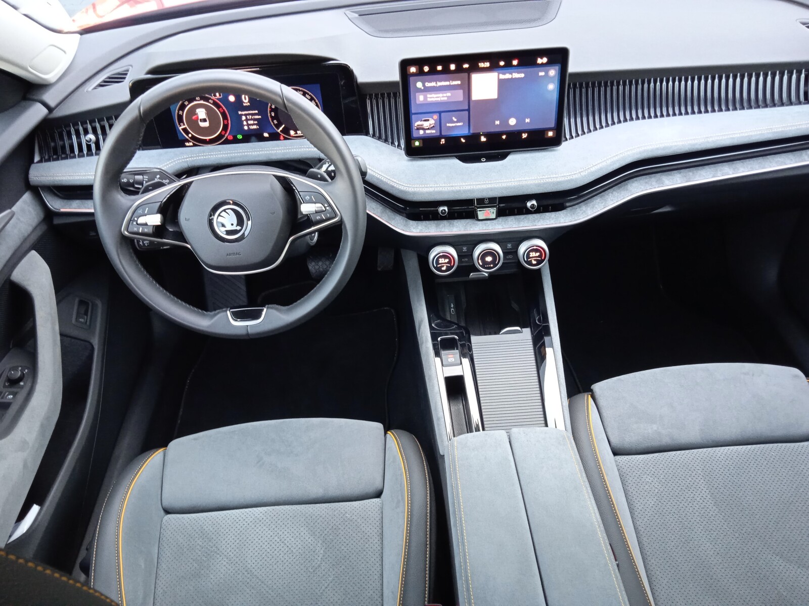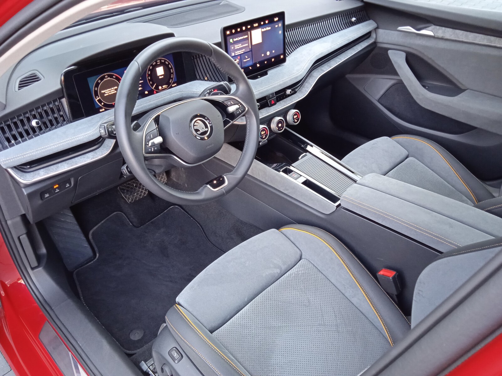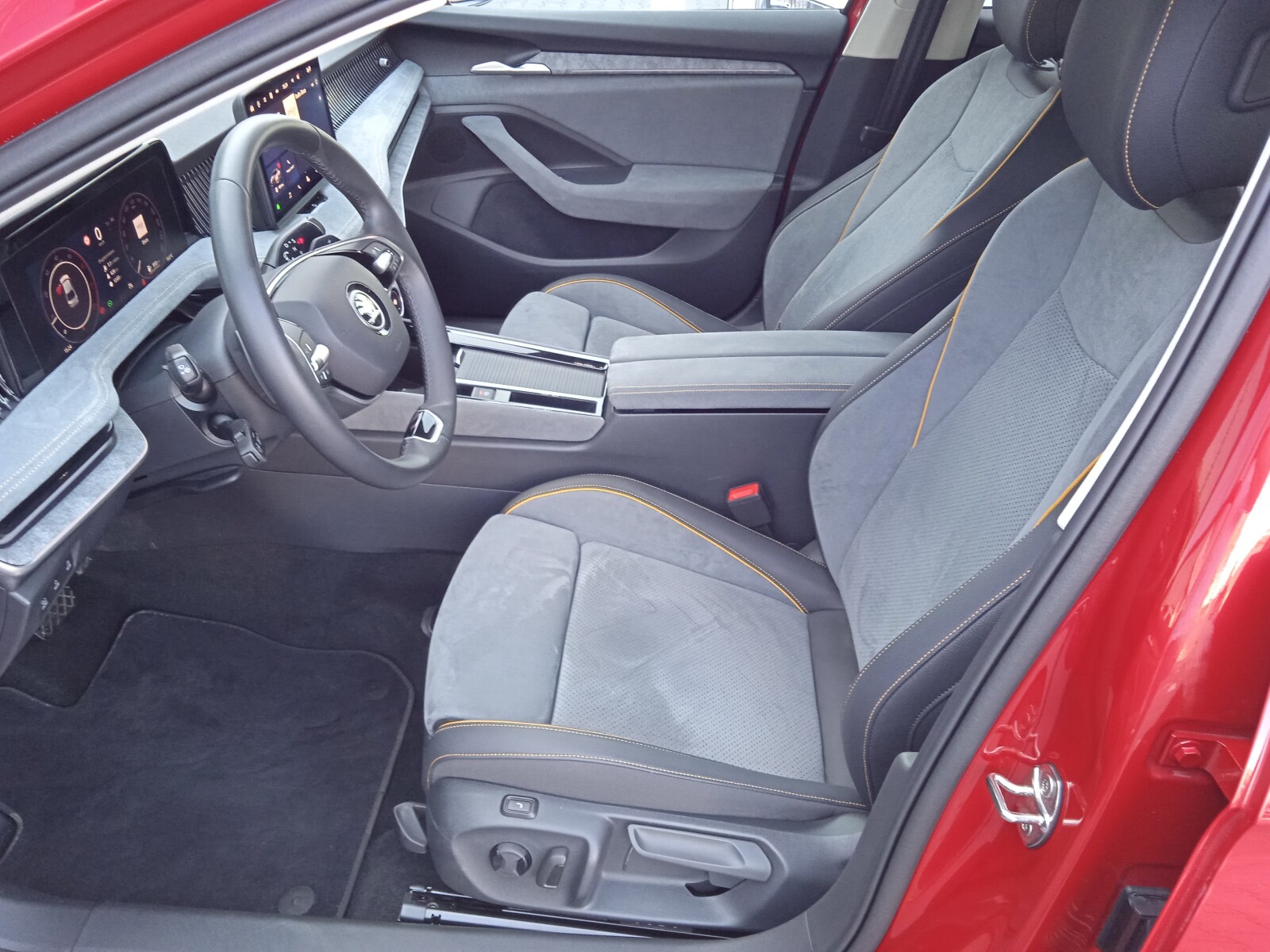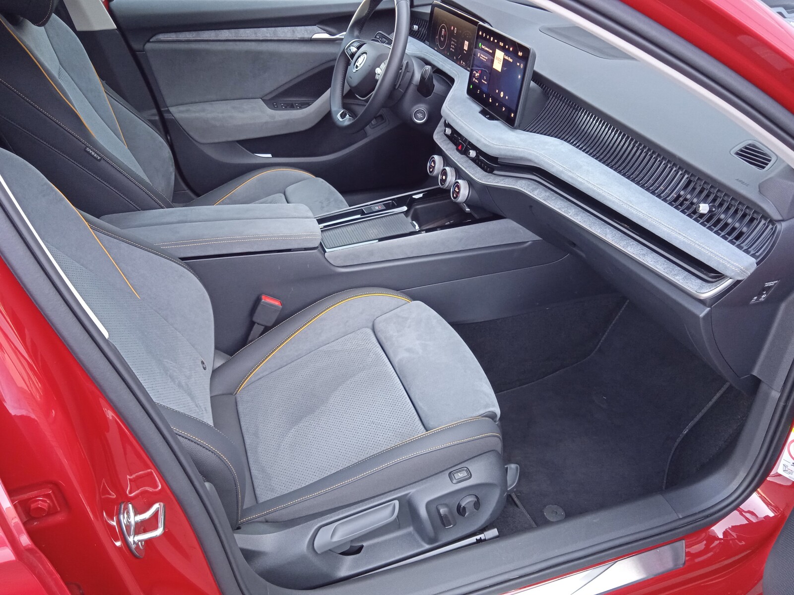 - Pakiet Design Selection LOUNGE (Dywaniki tekstylne, Fotele z ustawieniami częściowo elektrycznymi, Fotele przednie z regulacją lędźwiową + podstawowy masaż, Fotele przednie z wysuwanymi podparciami na uda, Fotele Suedia, Deska rozdzielcza pokryta materiałem Suedia z listwą Uniqe Dark Chrome, Drzwi od wewnątrz pokryte materiałem Suedia z dekorem, Podłokietnik z przodu w materiale Suedia, Podłokietnik z tyłu ze sztuczną skórą, regulowany na długość, z uchwytami na kubek, Oświetlenie Ambiente)