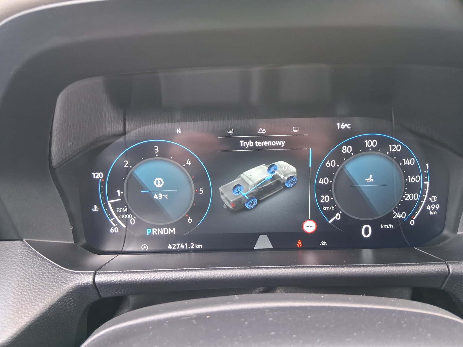 Wybór tryby jazdy standard, eko, śliska nawierzchnia, przyczepa, muł i koleiny, piasek