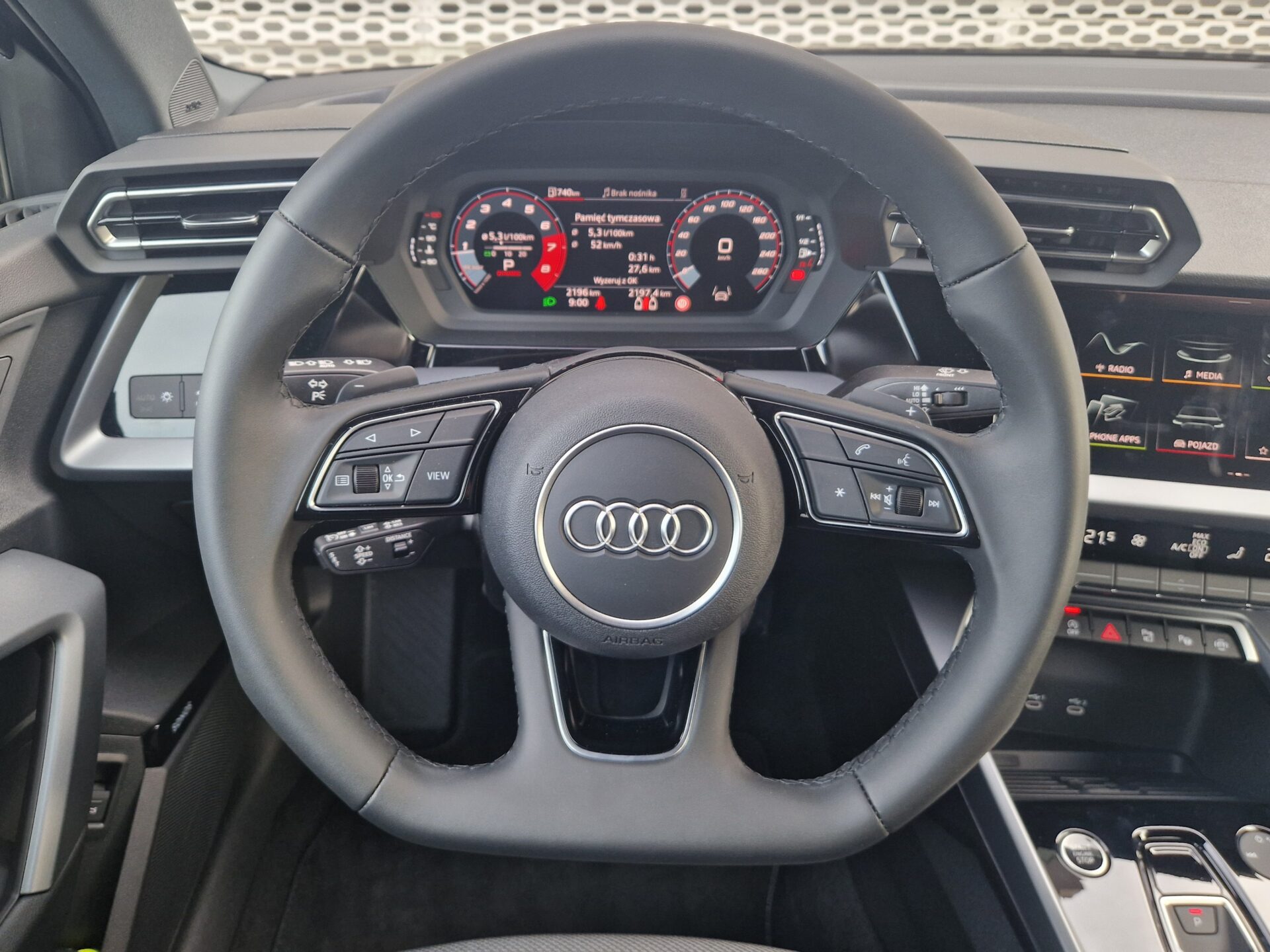 Sportowa kierownica 3-ramienna, spłaszczona u dołu, wielofunkcyjna plus, z funkcją zmiany