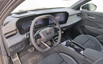 Auto wyróżnia się eleganckim lakierem szary Daytona perłowy, który w połączeniu z dynamiczną linią nadwozia Sportback oraz pakietami stylistycznymi nadaje mu nowoczesnego i sportowego wyglądu. Wnętrze utrzymane jest w czarnej stylistyce z pakietem S line, oferując wysoką jakość materiałów oraz sportowy charakter.