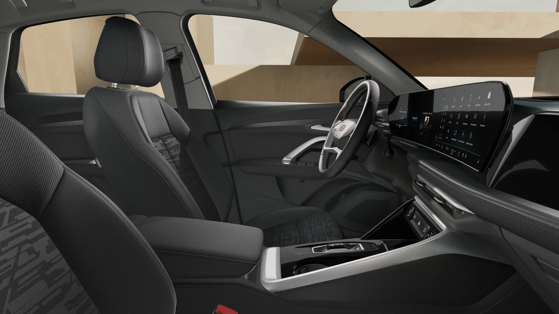 • Kolor nadwozia: czarny Mythos metalik – głęboki i wyrazisty odcień, który podkreśla sportową sylwetkę pojazdu.