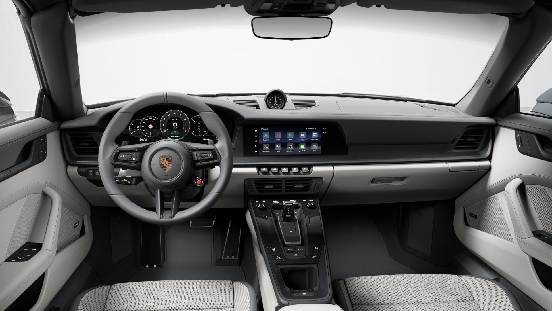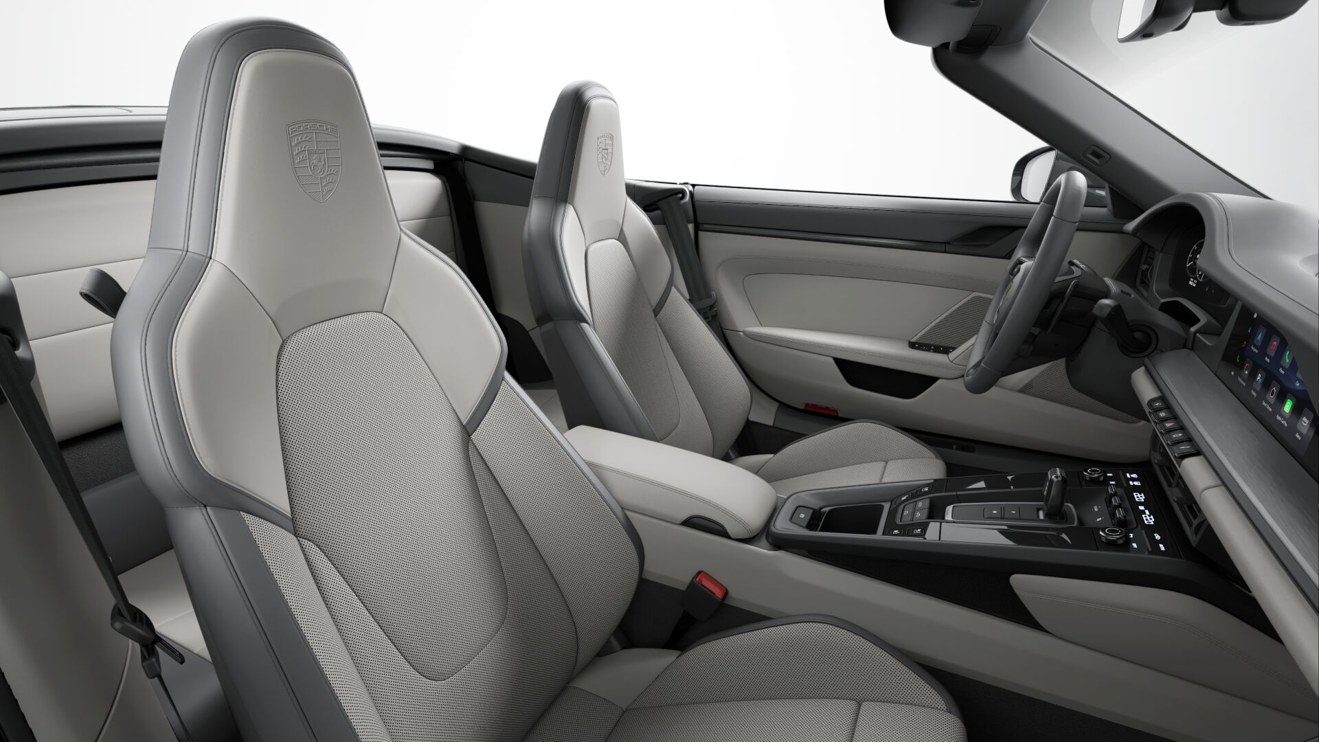 Herb Porsche na zagłówkach foteli z przodu Porsche Exclusive Manufaktur