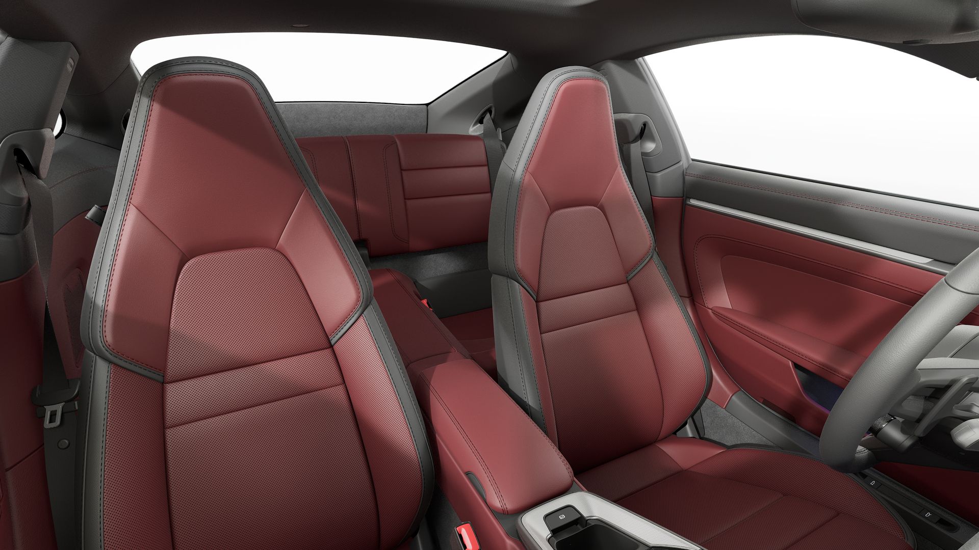 Wnętrze wykończone skórą w dwóch kolorach: czarnym i Bordeaux Red