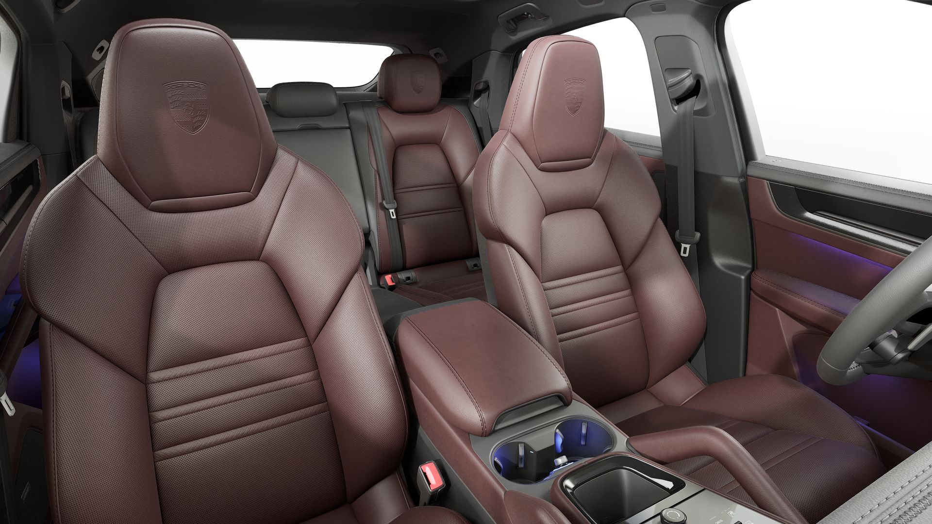 Herb Porsche na zagłówkach foteli Porsche Exclusive Manufaktur