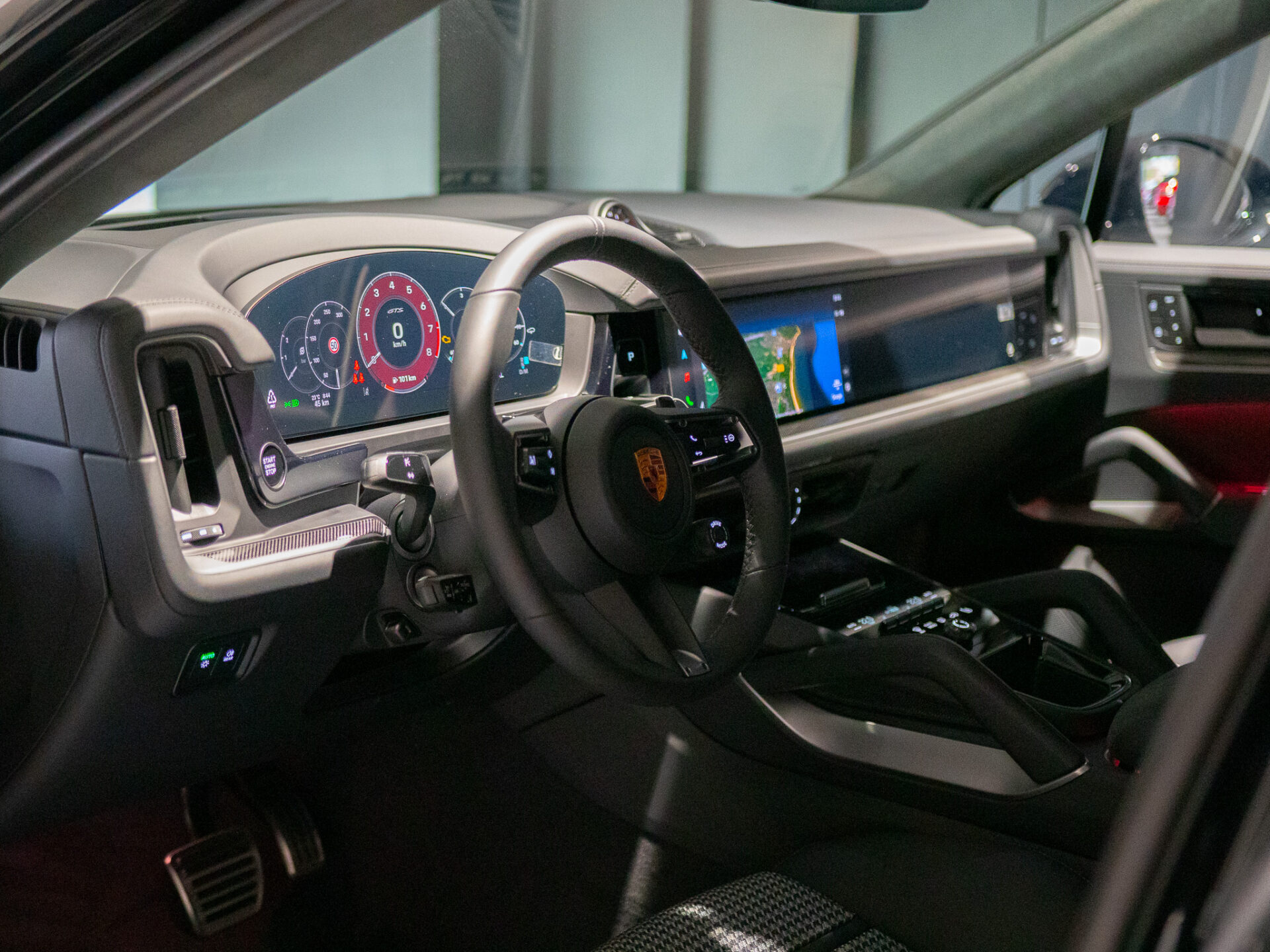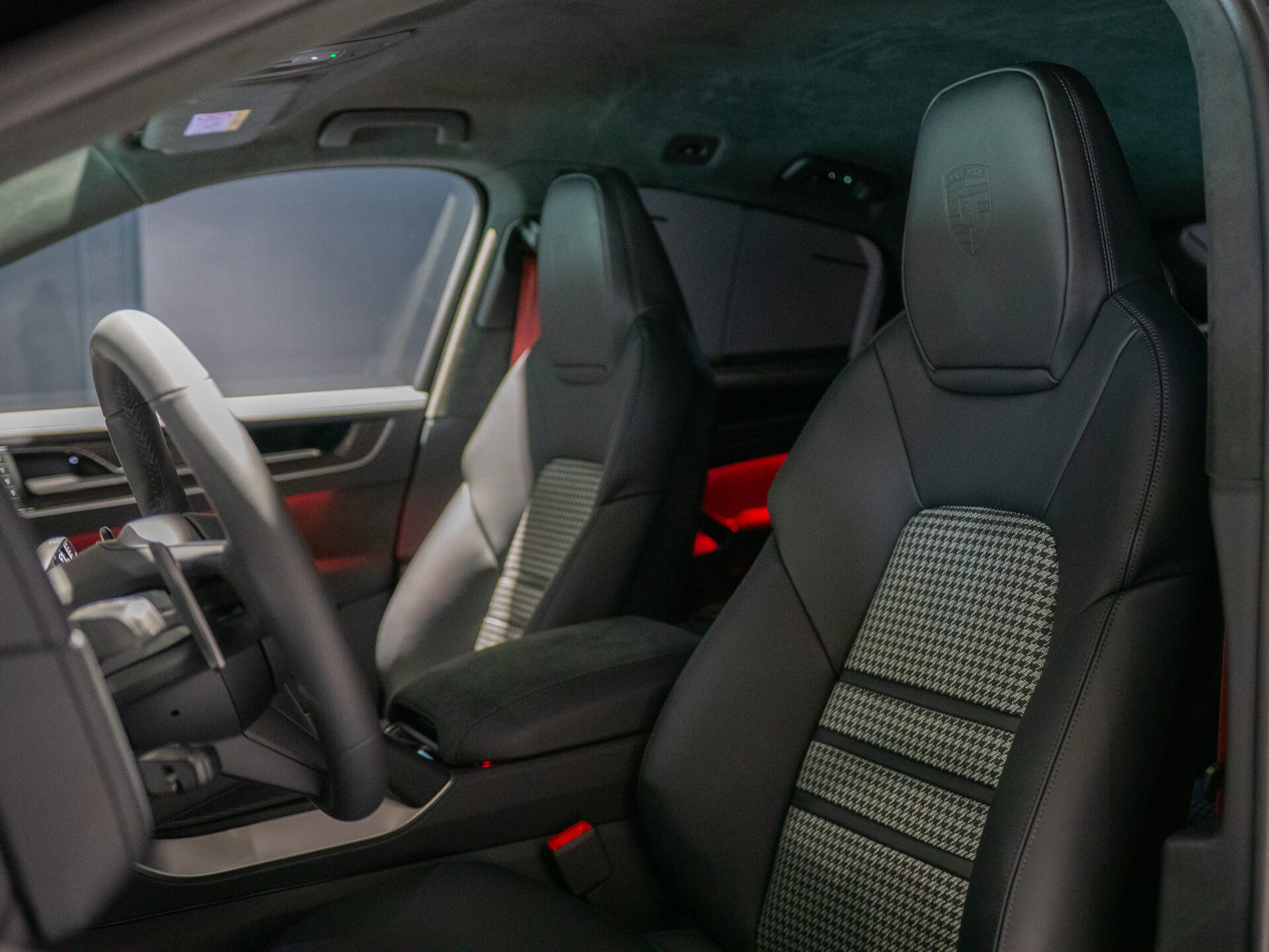 Kolor wnętrza Rozszerzony pakiet wnętrza częściowo wykończonego skórą i materiałem Race-Tex w kolorze czarnym, ze środkowymi panelami foteli z tkaniny