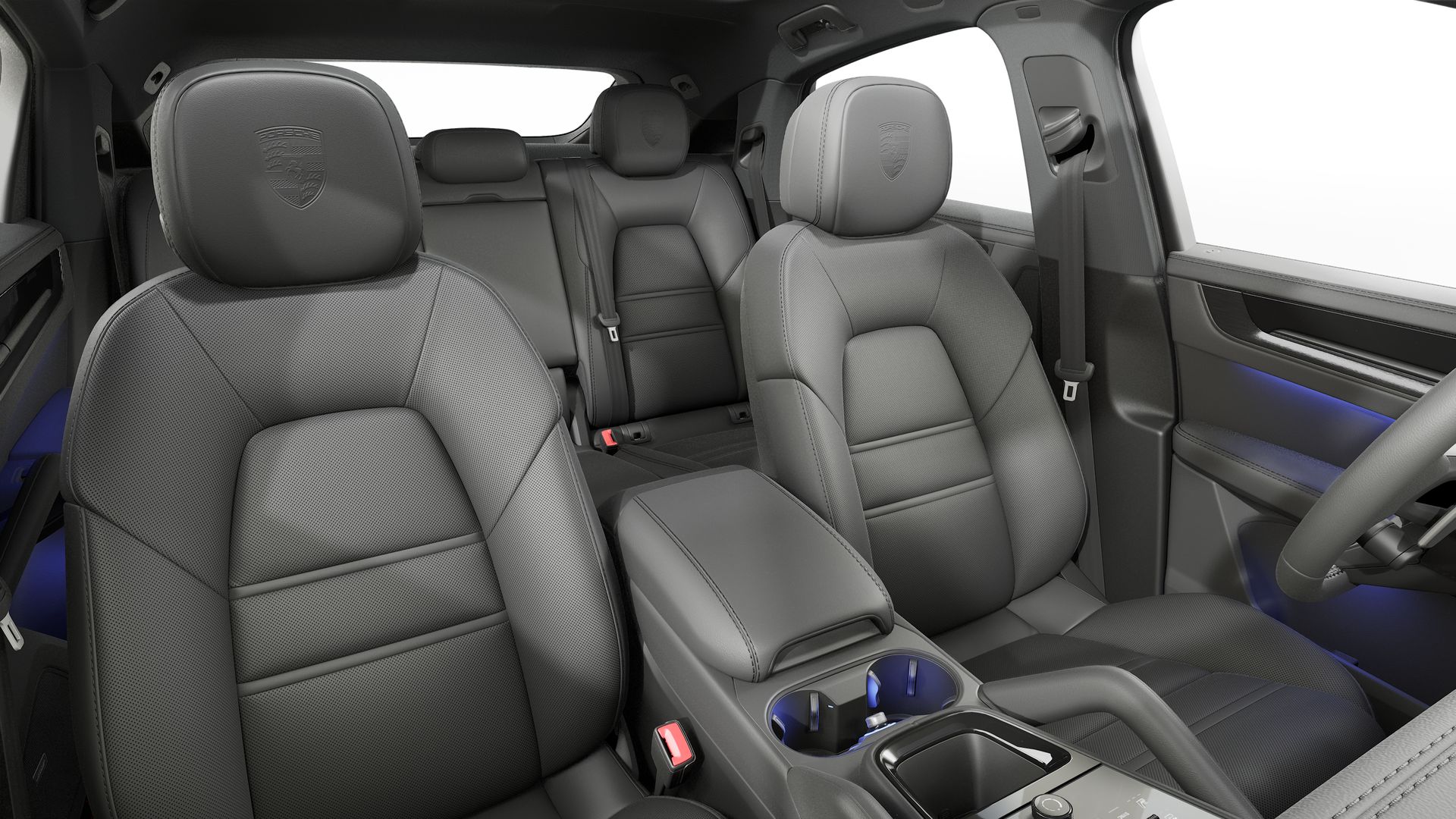 Herb Porsche na zagłówkach foteli Porsche Exclusive Manufaktur