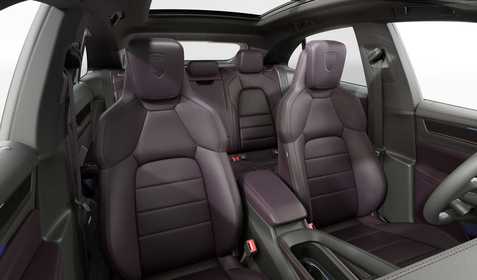 Herb Porsche na zagłówkach foteli z przodu Porsche Exclusive Manufaktur