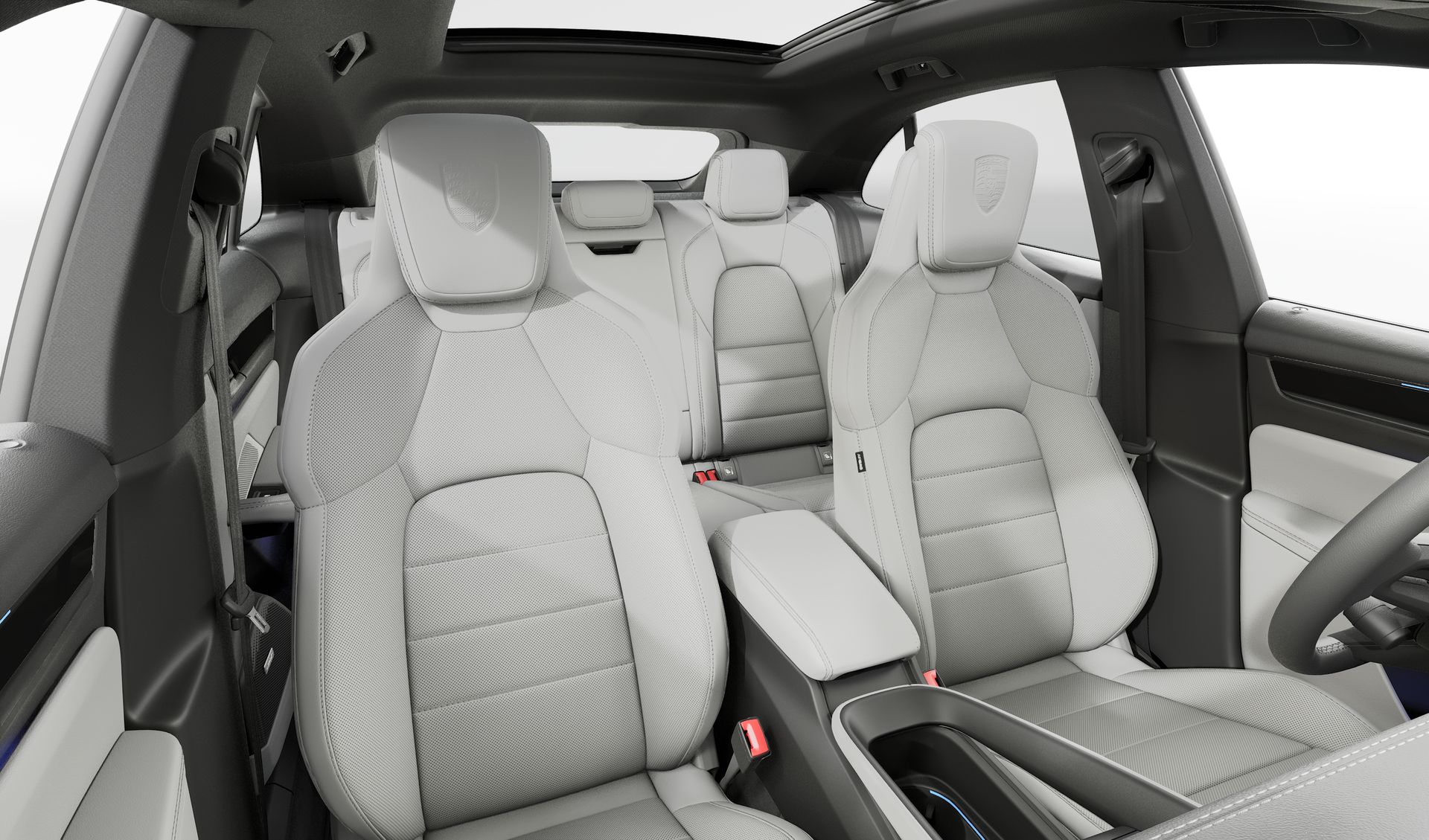 Herb Porsche na zagłówkach foteli z przodu Porsche Exclusive Manufaktur