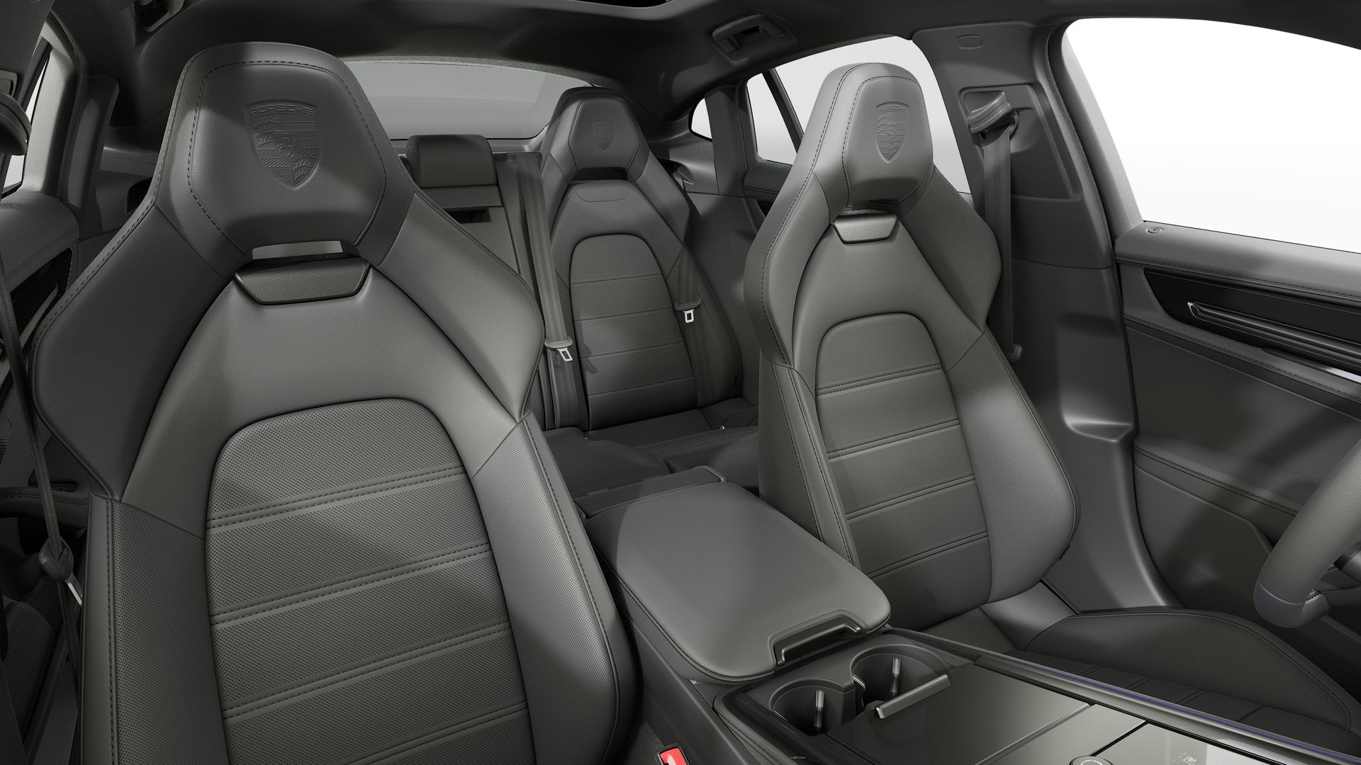 Herb Porsche na zagłówkach foteli Porsche Exclusive Manufaktur