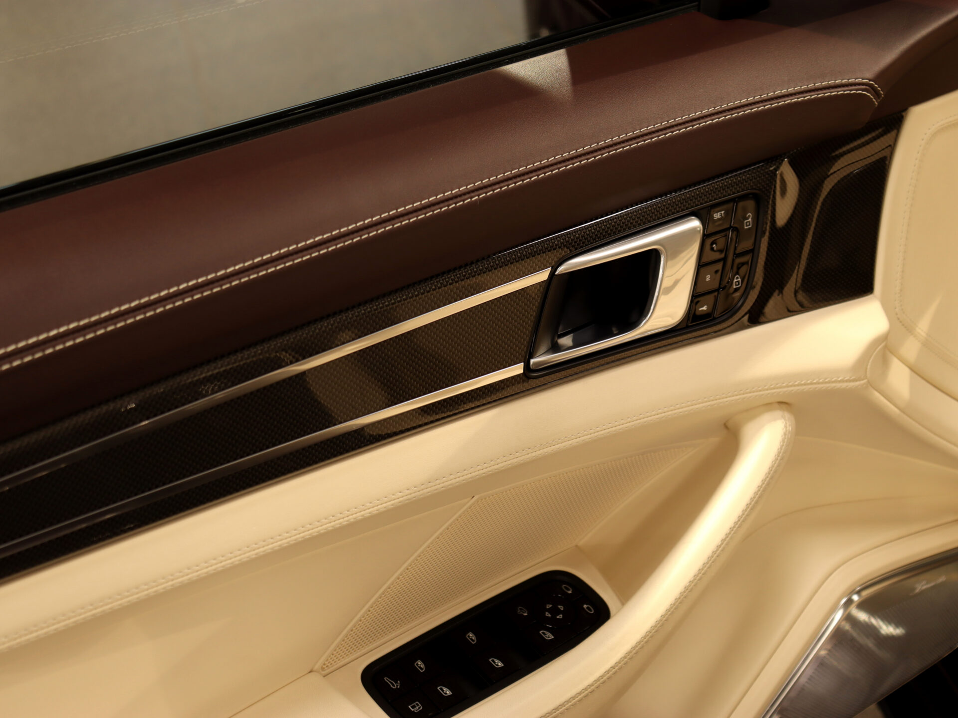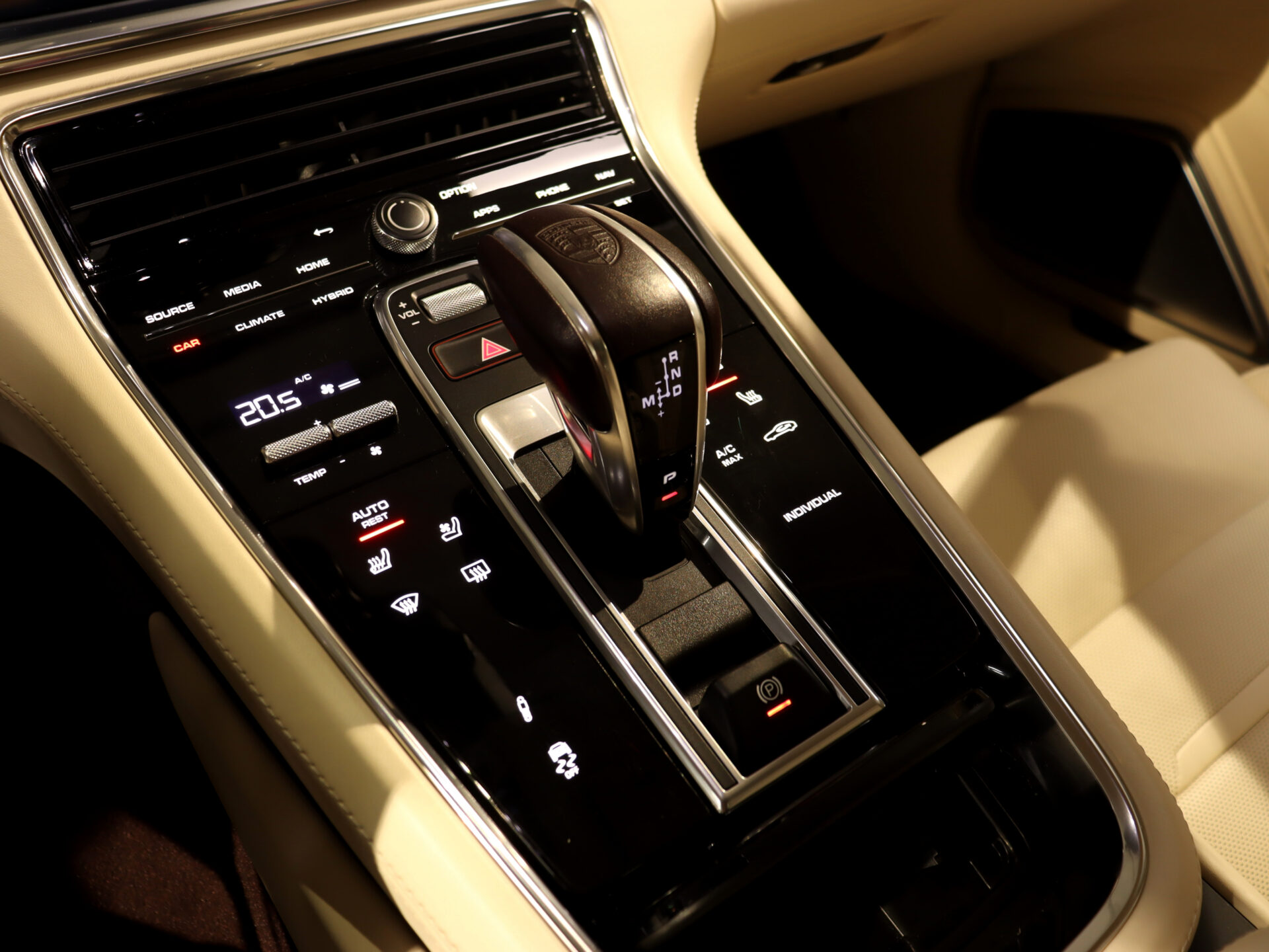 – Herb Porsche wytłoczony na podłokietniku w konsoli środkowej