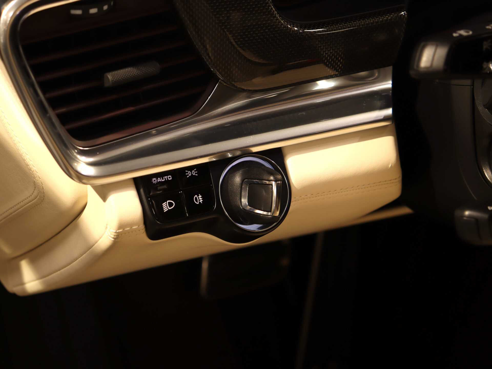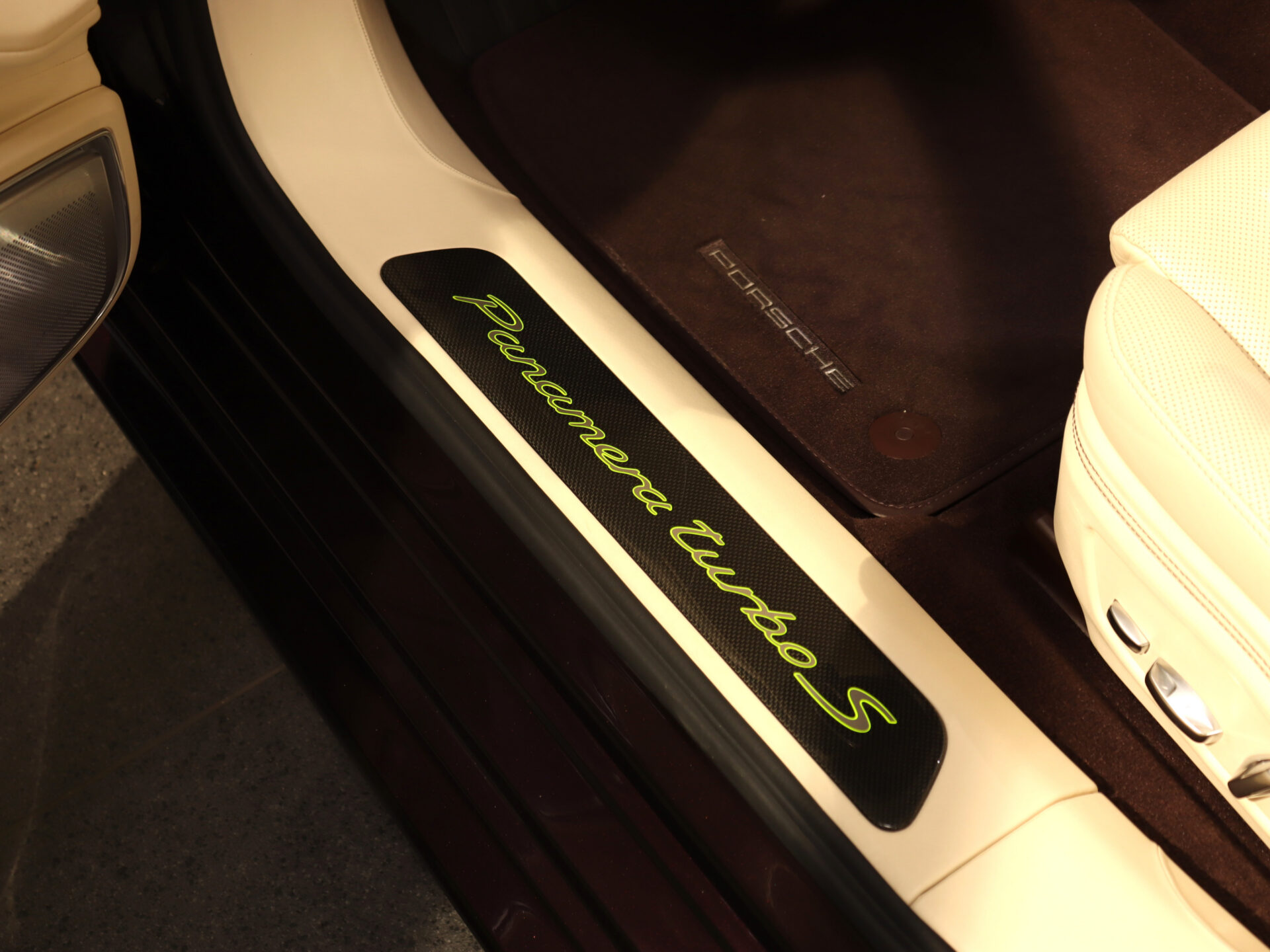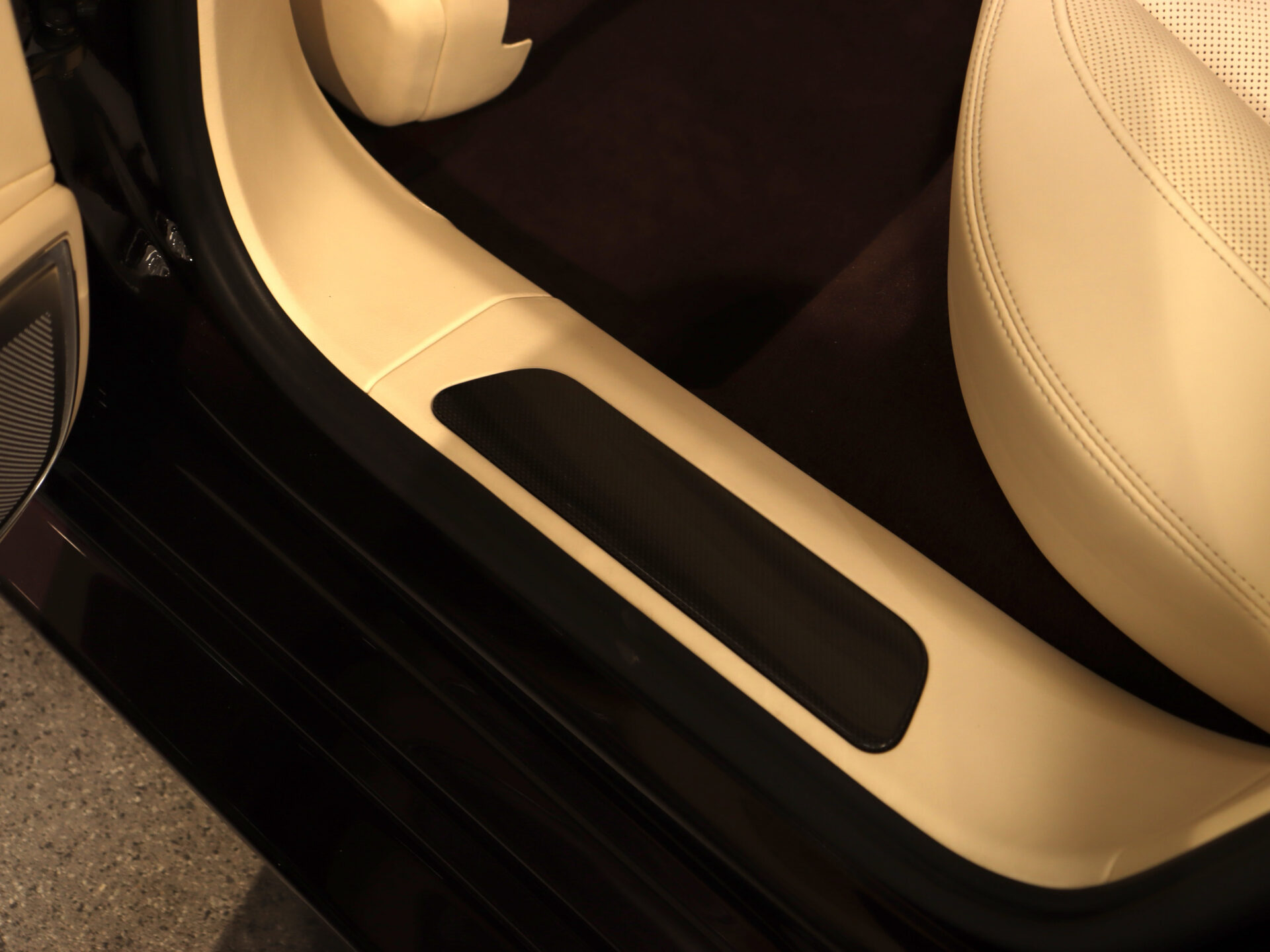 – Osłony progów drzwi z wykończeniem z włókna węglowego, podświetlane (w poł. z wewnętrznymi osłonami progów obitymi skórą)