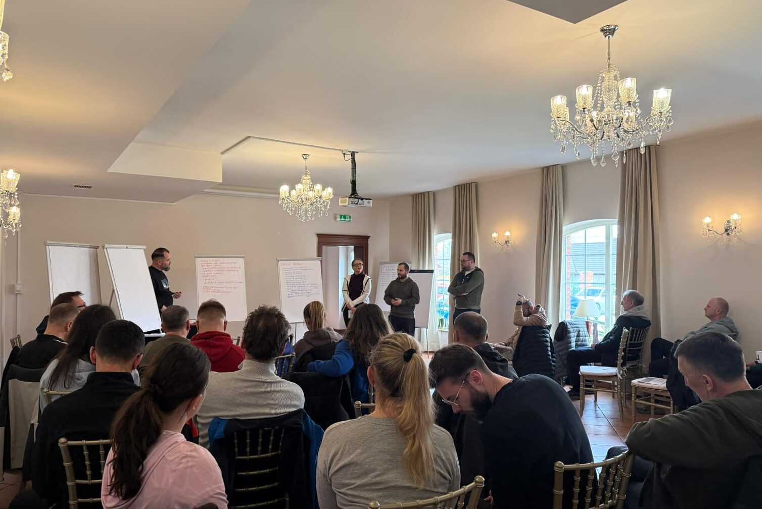 Spotkanie miało charakter warsztatowy i zostało zaprojektowane tak, by połączyć refleksję z praktyką. Uczestnicy nie tylko rozmawiali o swoich doświadczeniach, ale również angażowali się w liczne aktywności ruchowe, które sprzyjały budowaniu relacji, przełamywaniu schematów i lepszemu zrozumieniu dynamiki zespołowej. Tego typu działania pozwalają spojrzeć na współpracę z nowej perspektywy – poza codziennym kontekstem pracy.